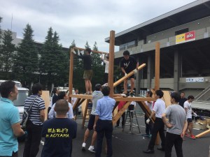 青山外苑前商店街振興組合の方々と共に、櫓の設営をしてきました。